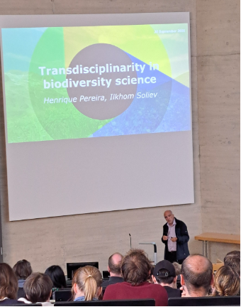 Ilkhom Soliev gives a seminar talk on transformative interventions at the German Centre for Integrative Biodiversity Research (iDiv) Halle-Jena-Leipzig .